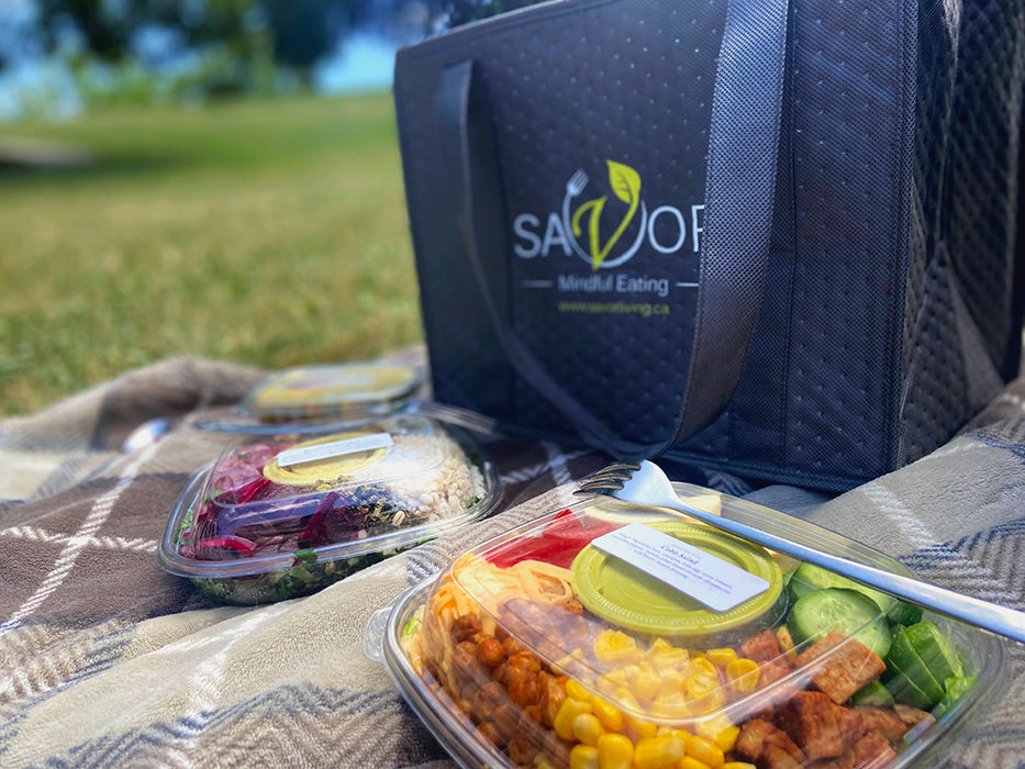 Offering a new menu every week! We are a zero-waste kitchen crafting fresh, made-to-order meals that are almost always organic. Orders close Monday morning for production or while ingredients last. We use seasonal, market-fresh ingredients and proudly support Canadian producers. Each dish is designed to host 2-3 servings. Meals arrive in biodegradable, recyclable, and reusable thermal bags. Please return them for our closed-loop delivery system.